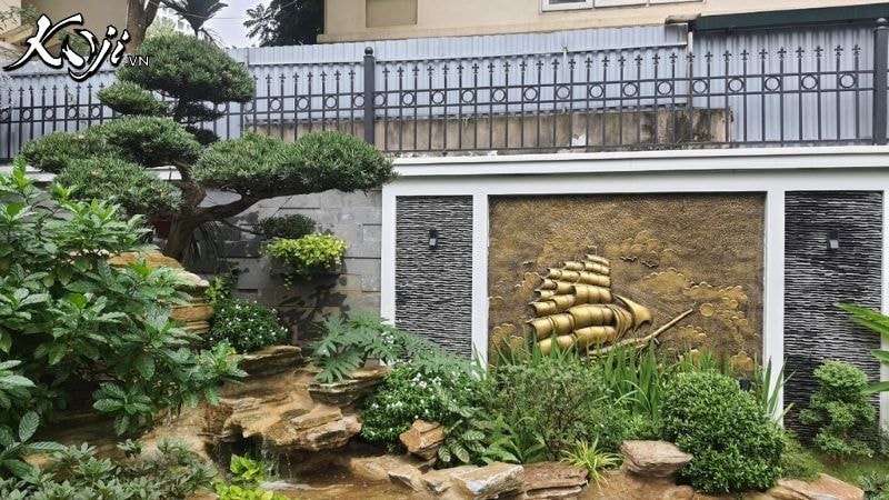 Các yếu tố trong sân vườn tiểu cảnh như cây xanh (mộc) hay thác nước sân vườn (thủy), hòn non bộ (thạch) đều giúp tăng thêm vượng khí, là nguồn năng lượng tốt mang lại tài lộc và may mắn gia chủ.