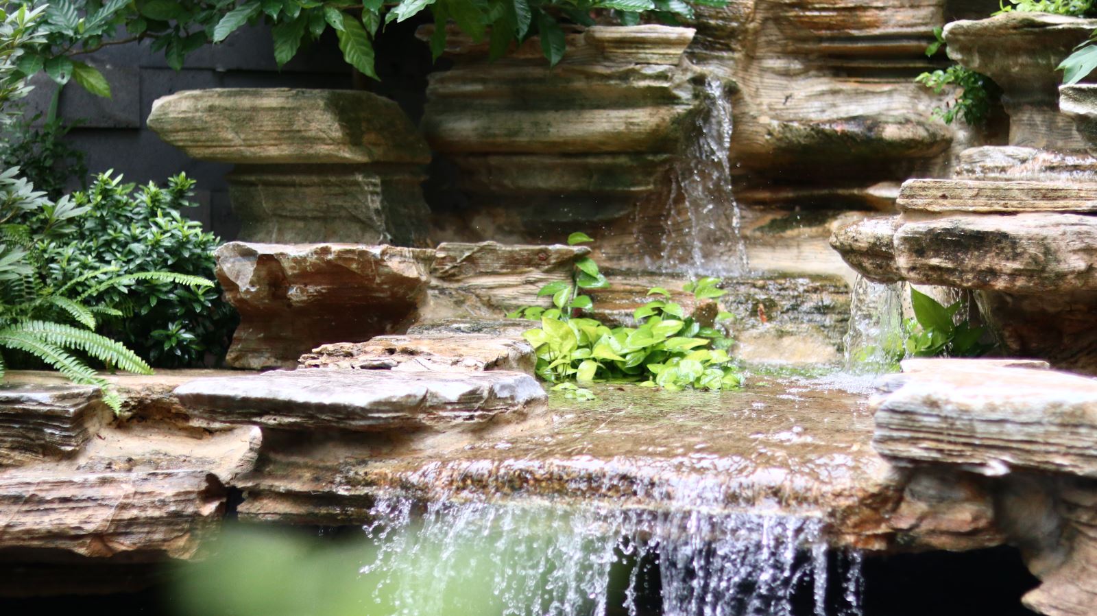 Thiết kế thác nước khi làm hòn non bộ bằng đá cuội tránh để trong nhà bởi tiếng nước liên tục gây khó chịu, mất yên tĩnh và nước thấm hay bắn ra ngoài.