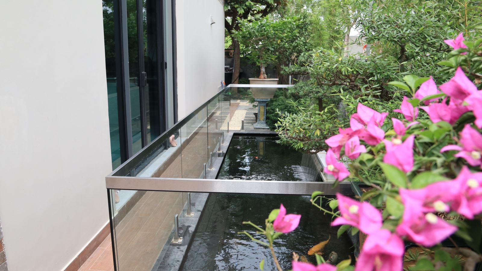 Trong không gian này, gia chủ có thể đặt thêm bộ bàn ghế để thư giãn, ngắm nhìn cây cỏ hoa lá, chơi đùa với cá koi, nghe tiếng nước chảy róc rách. Những áp lực, mệt mỏi sẽ tan biến, mang đến tinh thần sảng khoái cho mọi người.