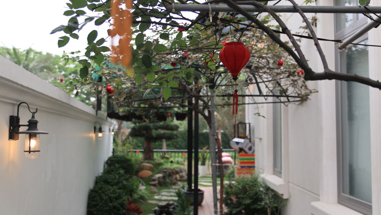 Bên cạnh đó, bạn có thể thêm vào những khóm hoa đẹp cho sân vườn nhà ống xung quanh lối đi, cây leo tường hoặc thậm chí một vườn tường đứng nhà ống xanh mướt. Những điểm nhấn này không chỉ che lấp những khoảng trống nhàm chán mà còn mang đến sự thích thú cho người ngắm, giúp giải tỏa căng thẳng và mang lại tinh thần sảng khoái.