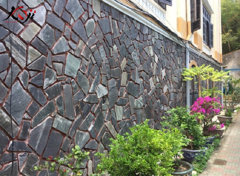 Ngoài việc sử dụng ốp chân móng thì đá rối đen cũng được ứng dụng nhiều trong trang trí tiểu cảnh nhờ vẻ đẹp mộc mạc, gần gũi.