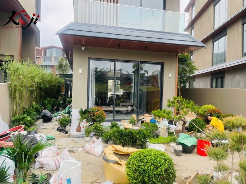 Ngoài ra, đội ngũ thi công cũng đặc biệt chú trọng đến việc xử lý đất, cải tạo nền và bổ sung dinh dưỡng cho cây trồng. Đây là yếu tố quan trọng giúp cây phát triển khỏe mạnh và duy trì vẻ đẹp lâu dài sau khi công trình hoàn thiện.