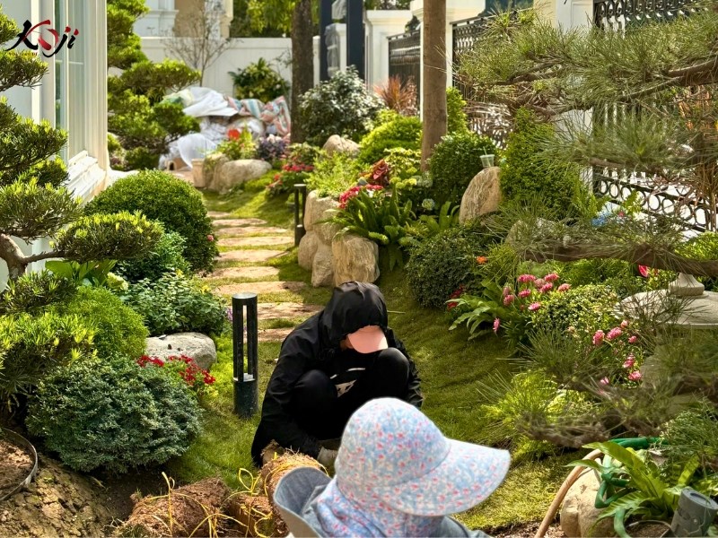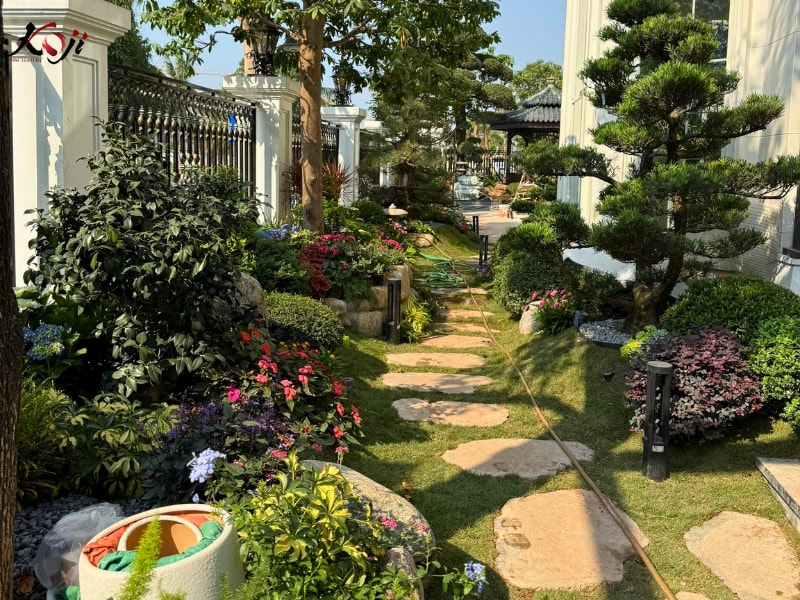 Một khu sân vườn đẹp không chỉ đến từ bản vẽ thiết kế, mà còn được quyết định bởi quy trình thi công chuẩn chỉnh và sự tỉ mỉ trong từng công đoạn. Công trình sân vườn biệt thự này hiện đang trong giai đoạn thi công hoàn thiện, được chúng tôi triển khai theo đúng hồ sơ thiết kế và định hướng thẩm mỹ ban đầu.