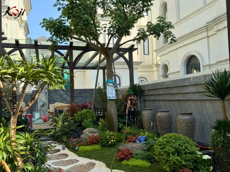 Với nhiều năm kinh nghiệm và sứ mệnh kiến tạo những điểm chạm để con người có thể gần gũi với thiên nhiên, Koji Landscape tự hào sẽ là người bạn đồng hành trong các công trình thiết kế sân vườn đẳng cấp và hiện đại. Nếu bạn có nhu cầu thiết kế sân vườn chuyên nghiệp, hãy liên hệ đến chúng tôi qua số hotline 0912 879 919 để được nhận tư vấn miễn phí ngay hôm nay!