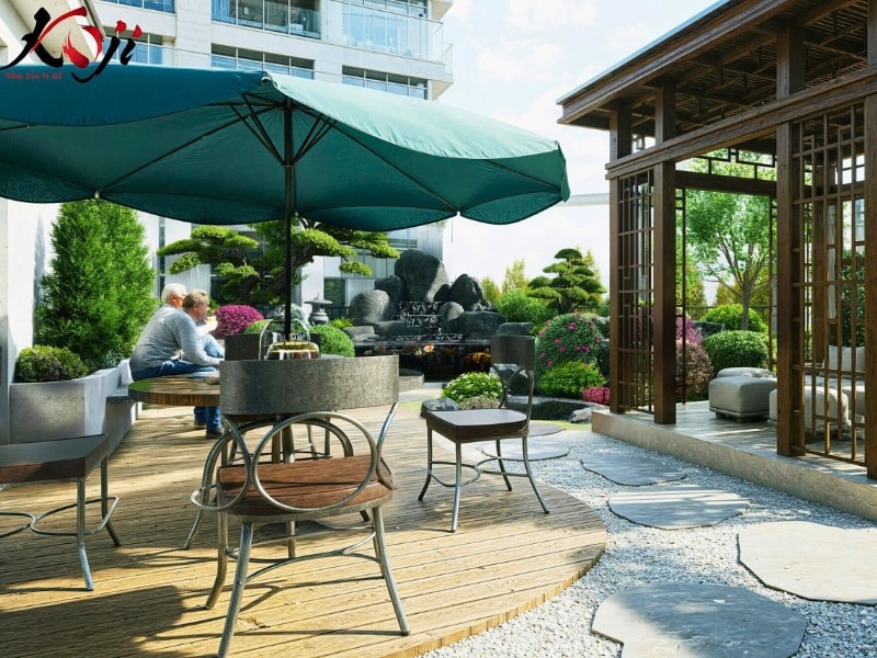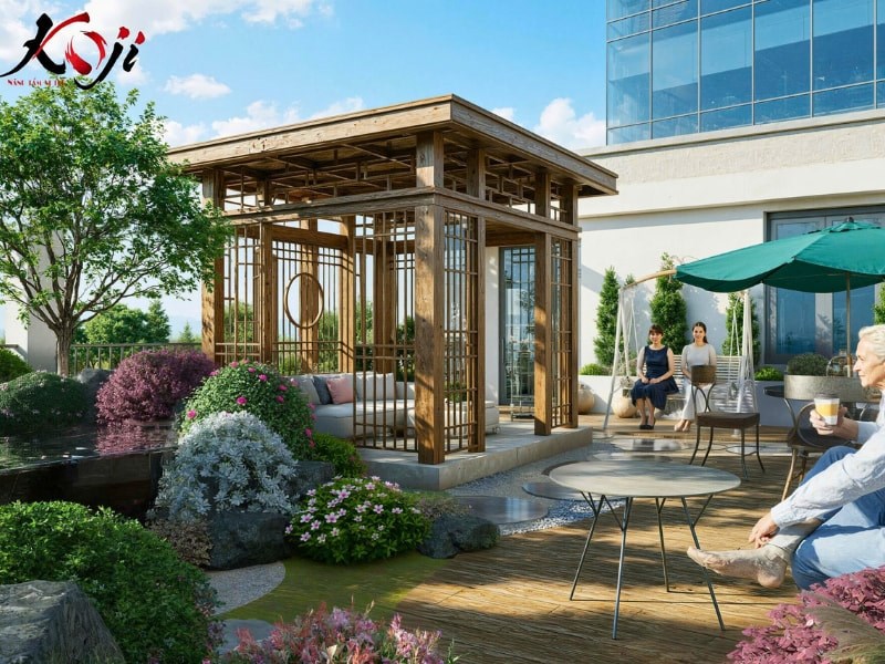 Phương án 2 của sân vườn trên sân thượng Vĩnh Phúc là sự giao hòa giữa nghệ thuật sân vườn Nhật Bản và phong cách sống hiện đại. Đây không chỉ là nơi nghỉ ngơi, thư giãn mà còn là biểu tượng của gu thẩm mỹ tinh tế và đẳng cấp sống xanh của gia chủ.