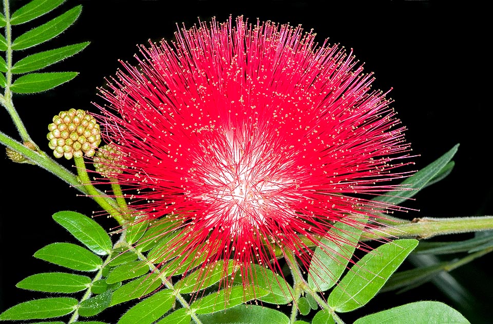 Hoa: Hoa kiều hùng bonsai có hình cầu, màu hồng phấn hoặc đỏ tươi, nở rộ quanh năm, là một cây thân gỗ ra hoa mang đến điểm nhấn nổi bật trên nền lá xanh. Hoa thường mọc thành cụm ở đầu cành, mang đến vẻ đẹp rực rỡ và thu hút mọi ánh nhìn.