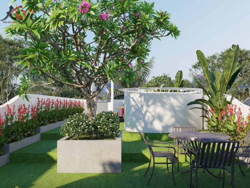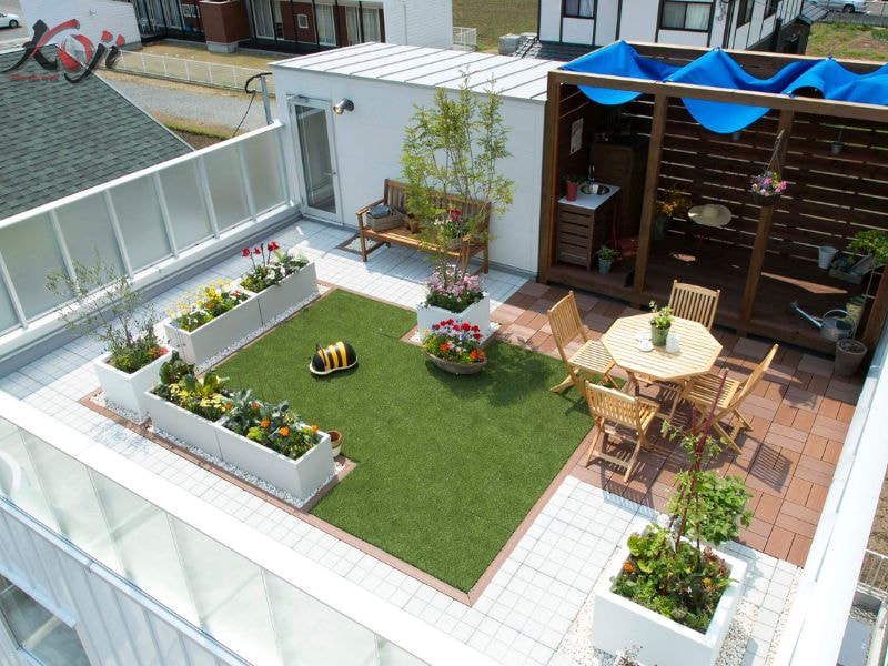 Sân vườn trên sân thượng sẽ giúp làm đẹp cho không gian sống của ngôi nhà bạn, cũng như mang tới một không gian sống riêng dành cho các thành viên trong gia đình.