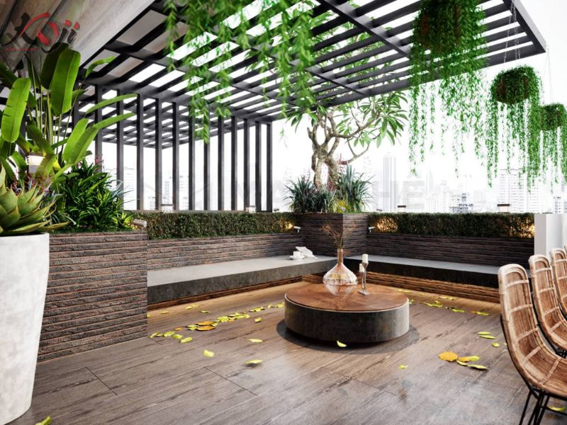 Đây là không gian đón nhận nhiều nhất ánh sáng tự nhiên, “thịnh dương”. Để có thể cân bằng âm dương cho ngôi nhà, việc bố trí các khoảng râm mát bằng mái che hay bóng râm của cây xanh là điều rất thiết. Cho nên, việc tạo ra vườn cây sân thượng đẹp được đánh giá là sự lựa chọn tối ưu nhất.